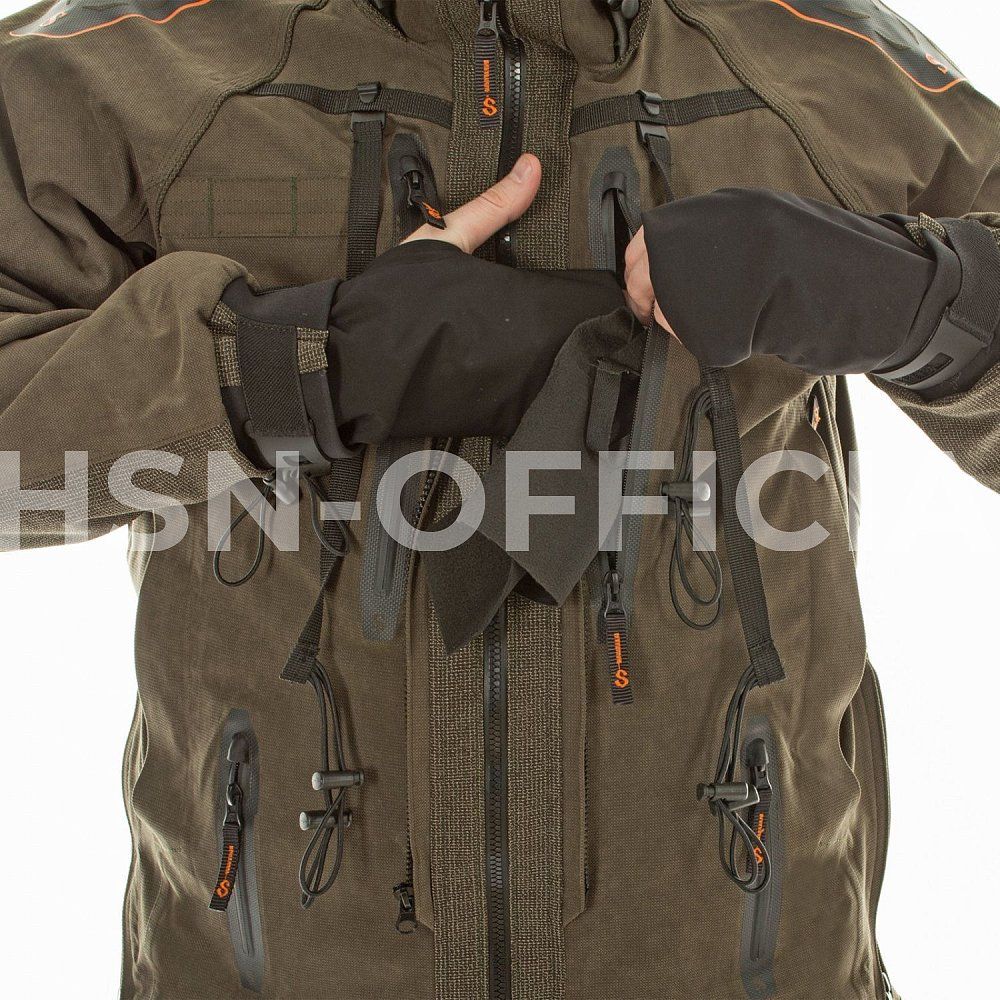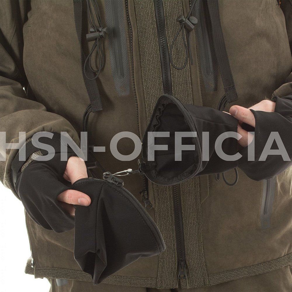 - высокий ветрозащитный воротник усиленный неопреном с регулировкой;