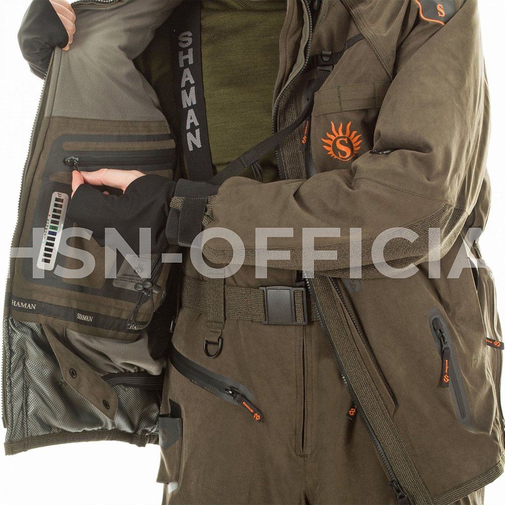 - внутри куртки вклеенный влагозащитный карман на влагостойкой молнии с датчиком температуры, карман на молнии и объемный карман из сетки;